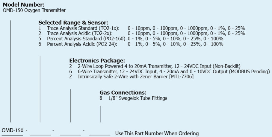 | OMD-150氧氣分析儀/微氧分析儀採用氧氣感測器是利用電化學電極(electrochemical fuel cell)量測氧氣濃度。使用24Vdc電源。 | |